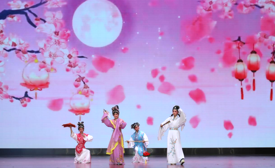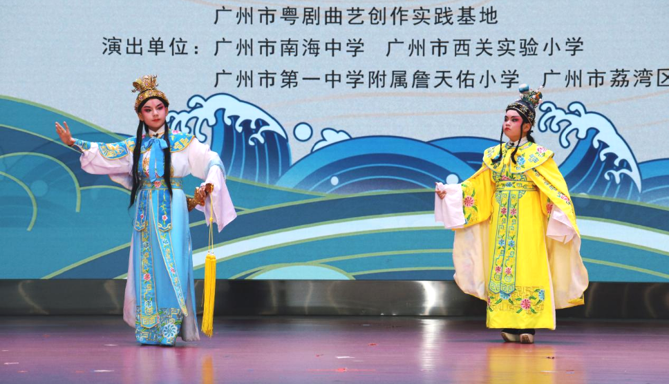 “携书剑,滞京华,又是元宵,灯色挂。”悠扬的粤曲《紫钗记之月圆花好》从舞台传出,小演员们把明代戏剧家汤显祖创作的绝美爱情故事重新展现在观众面前。跌宕起伏的情节,优美动听的唱腔惹人共情,使得台下观众为之拍手叫好。