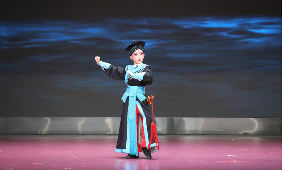 由荔湾区青少年宫、广州市西关实验小学联合选送的粤剧折子戏《林冲夜奔》,讲述了豹子头林冲英雄落魄、慷慨悲愤的故事。其中林冲“箭衣武生”的定位,要求表演者把短打武生的利落和长靠武生的刚猛这两种截然不同的身段恰到好处地糅合在一起。来自广州市西关小学的邵隽熙同学向记者介绍,这一幕着重演出林冲遭人陷害,在夜间逃走时一路悲凉的复杂心境,充满了浓烈的抗争精神,对自己也很有启发。
