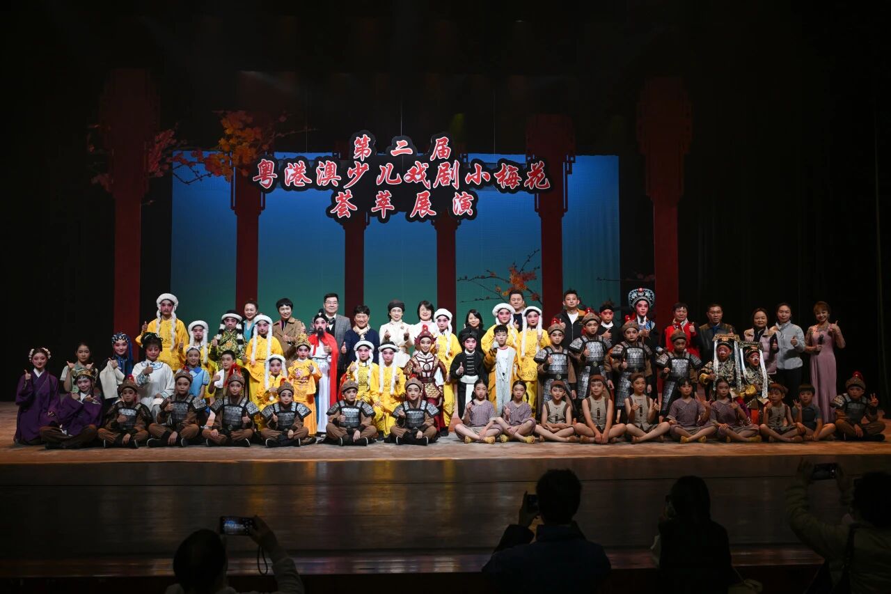 作为粤港澳大湾区少儿戏剧领域的年度盛事,活动获得业界及相关单位的高度关注与鼎力支持。广东省文联、省戏剧家协会、省繁荣粤剧基金会等单位领导,粤剧表演艺术家、戏剧界专家学者,以及珠海、广州等地文旅部门、教育机构、基金会相关负责人齐聚现场,汇聚戏剧表演、文旅管理、艺术教育等多领域力量,为活动注入浓厚的专业氛围与强劲的行业影响力,共同见证“小梅花”们的绽放时刻。 广东省文联党组成员、专职副主席、广东省戏剧家协会主席曾小敏在致辞中回顾了粤港澳少儿戏剧小梅花荟萃活动的丰硕成果——2025年第二届活动规模再创新高,吸引粤港澳93个单位的1125名小演员踊跃参与,在第29届中国少儿戏曲小梅花荟萃中更是创下19个项目入选的历史佳绩;2026年,活动将迎来创办20周年,二十载深耕不辍,十六届薪火相传,累计超4000人次参评,300余人次跻身“中国少儿戏曲小梅花”行列,已成为岭南戏剧后备人才培养的重要摇篮,更是大湾区文化融合与青少年美育教育的生动实践。展望未来,曾小敏强调,将始终秉承“以戏育美,以美化人”的理念,通过加强少儿戏曲传承基地建设、开展文艺小骑兵走基层活动、丰富青少儿戏剧指导剧目共享公益库等举措,着力培养新时代戏剧艺术接班人,“涵养三地青少儿的文化认同、厚植爱国情怀,向世界展示中国少年自信、拼搏、刚健、友爱的精神风貌”。 颁奖环节星光熠熠,一批功底扎实、演绎精彩的少儿戏剧表演者与优秀组织单位收获殊荣。蔡诺恒、何雨豪、李晓桐、邓沐阳、钟建航、何泓霈、张国桐、刘梓康等获得个人业余组“小梅花”称号;吴峻帆、洪鑫涵、黄宛俞、徐诗淇、黄建坤等荣获个人专业组“小梅花”称号。原创粤剧《木兰诗》《伶仃九拍·崖海遗恨》《治水记》及经典粤剧《哪吒闹海》四个集体节目获评“小梅花优秀集体节目”。同时,珠海高新区文化服务中心、东莞市长安镇乌沙幼儿园、汕头文化艺术学校等16家单位被授予“优秀组织单位”荣誉。 活动中,象征着责任与传承的授旗仪式成为全场焦点。第三届粤港澳少儿戏剧小梅花荟萃将于2026年5月在珠海市高新区举办,曾小敏主席亲手将“粤港澳少儿戏剧小梅花荟萃”旗帜交接给珠海市高新区管委会副主任杨筱。旗帜交接的瞬间,既是使命的传递,更是希望的启航,预示着粤港澳大湾区少儿戏剧事业将在接力中蓬勃发展、薪火永续。 展演环节中,多个经典与原创剧目轮番登场,为现场观众呈现了一场精彩纷呈的戏曲盛宴。 原创粤剧《伶仃九拍·崖海遗恨》重现悲壮历史,彰显民族不屈魂灵;6岁小演员邓沐阳演绎的粤剧《铜网阵》,将少年英雄的果敢无畏展现得淋漓尽致;原创粤剧《治水记》以孩童视角回溯历史,传递守望家园的深厚情怀;潮剧《死谏》、广东汉剧《秦香莲·杀庙》、雷剧《林冲夜奔》、京剧《击鼓骂曹》、粤剧《武松打虎》等剧目各具特色,小演员们以精湛的演技、饱满的情感,诠释了不同剧种的独特魅力;原创粤剧《木兰诗》则让“巾帼不让须眉”的木兰精神在新时代焕发新的活力。 第二届粤港澳少儿戏剧小梅花荟萃展演的圆满落幕,不仅为粤港澳青少年提供了展示才华、交流学习的优质平台,更让中华优秀传统文化在孩子们心中播下传承的种子。 戏曲传承,贵在少年;文化自信,始于童心。 近年来,广东粤剧院以粤剧为纽带,通过“进校园、编课本、办夏令营”构建多层次校园美育体系,让传统艺术在青春校园绽放时代新韵。 自2008年起,“粤剧进校园”以“讲演结合、沉浸体验”等方式走进粤港澳桂300余所学校,举办近千场活动,覆盖大、中、小、幼全学段,惠及师生近30万人次,获评多项省级优秀项目及实践基地。