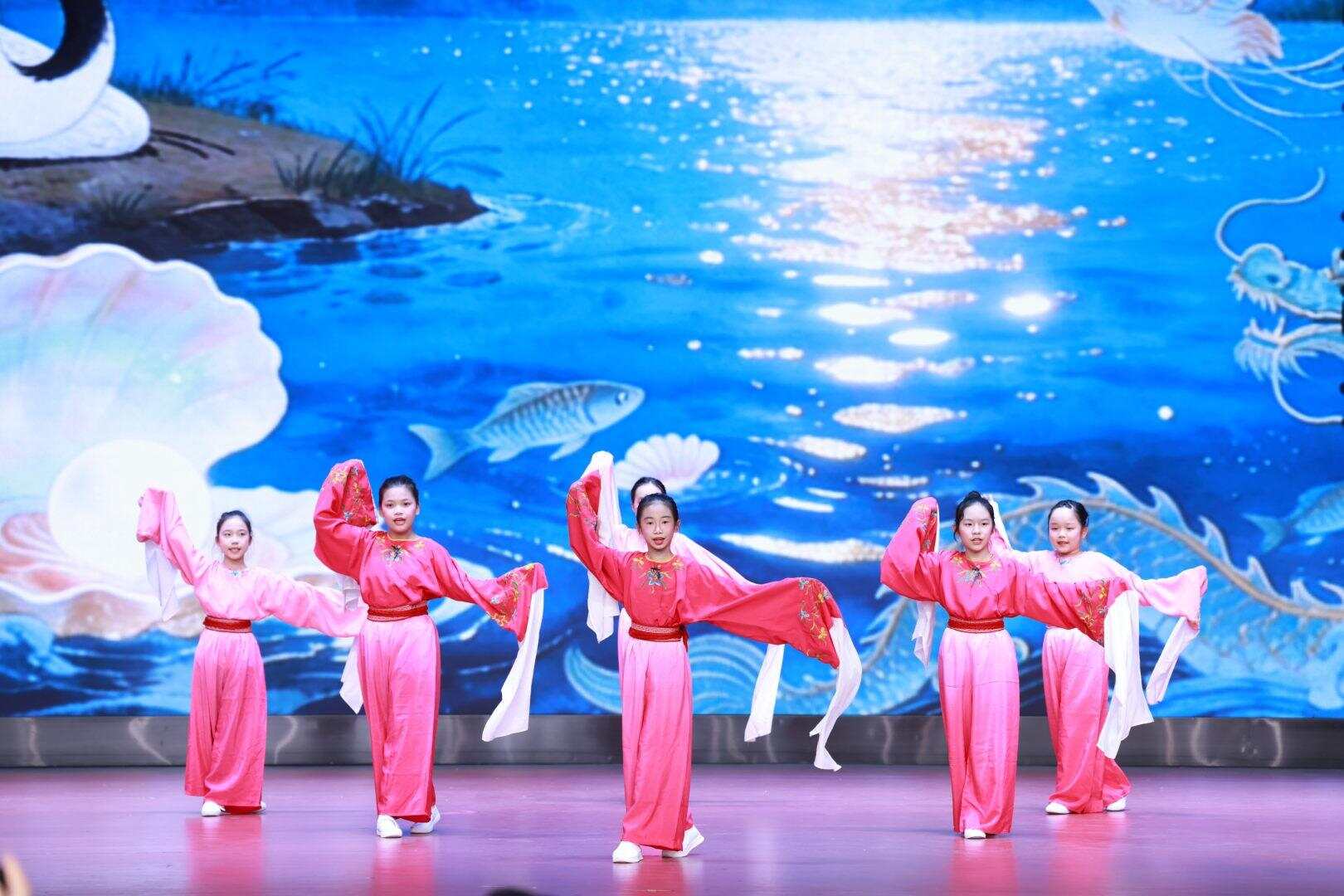 水袖翻飞间,小演员们带来《虹桥赠珠》,将凌波仙子与凡人公子的爱情传说娓娓道来。弹拨乐合奏《立春》则用灵动指尖演绎二十四节气之首,流淌出春暖花开之景。