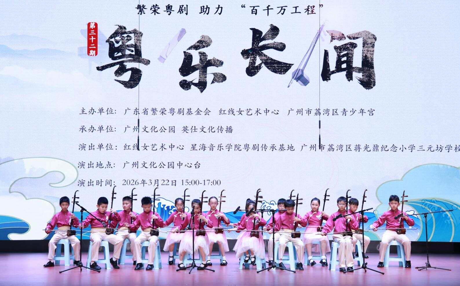 活动由广东省繁荣粤剧基金会、红线女艺术中心、广州市荔湾区青少年宫等单位联合主办,汇聚粤曲新秀与器乐新芽,用童声稚韵与丝竹管弦,让市民在春日午后共享一场传统与青春交织的艺术聚会。