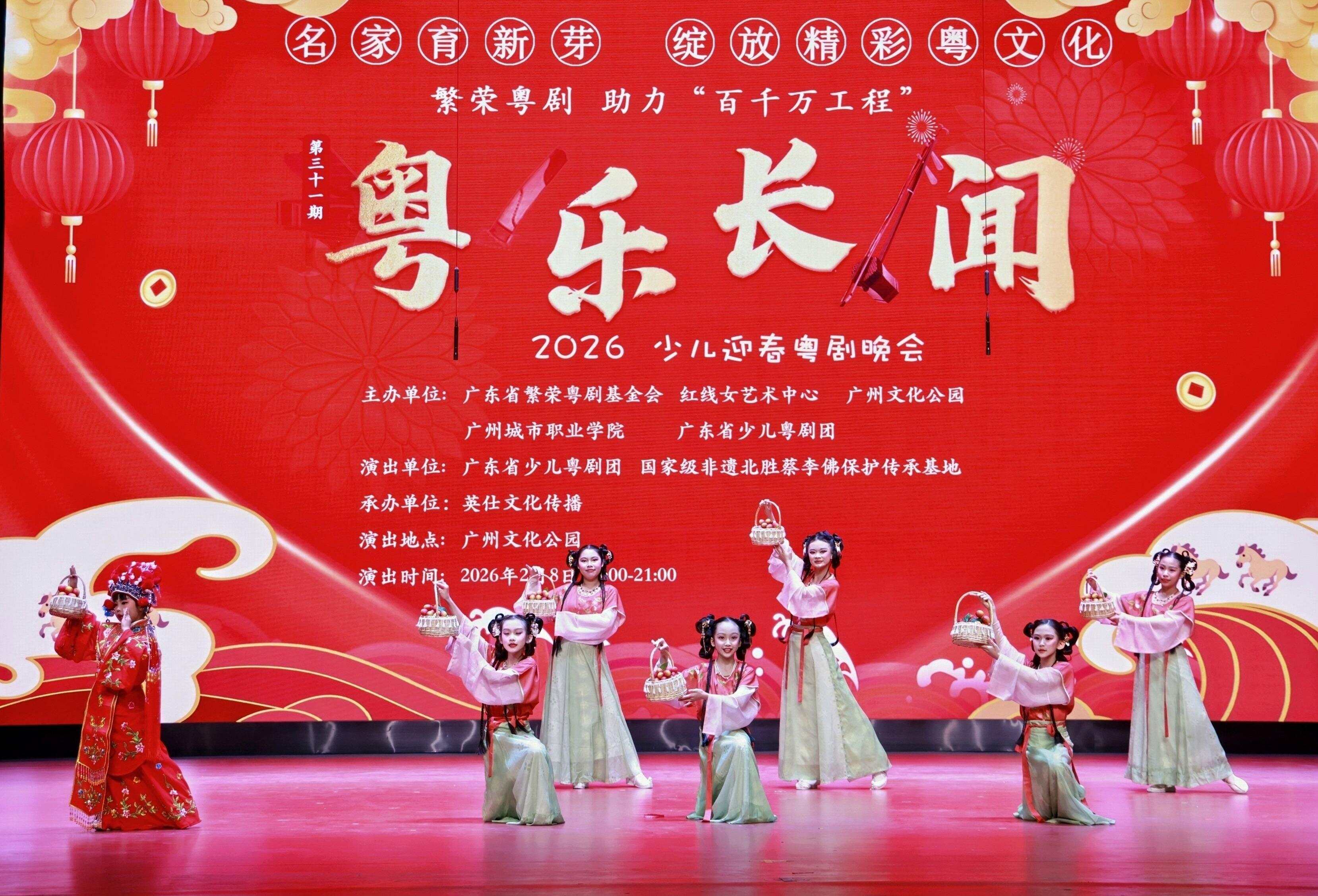 近日,一场洋溢着岭南风情与新春喜庆的少儿迎春粤剧晚会在广州文化公园中心台温情上演。