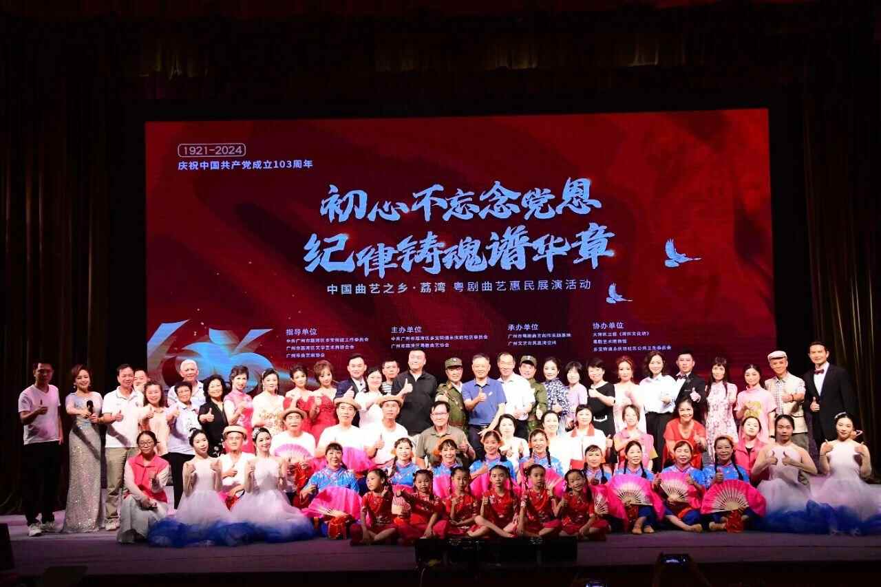 2024年是中国共产党103周年华诞。7月5日,“初心不忘念党恩 纪律铸魂谱华章——中国曲艺之乡荔湾粤剧曲艺惠民展演”在粤剧艺术博物馆举办。