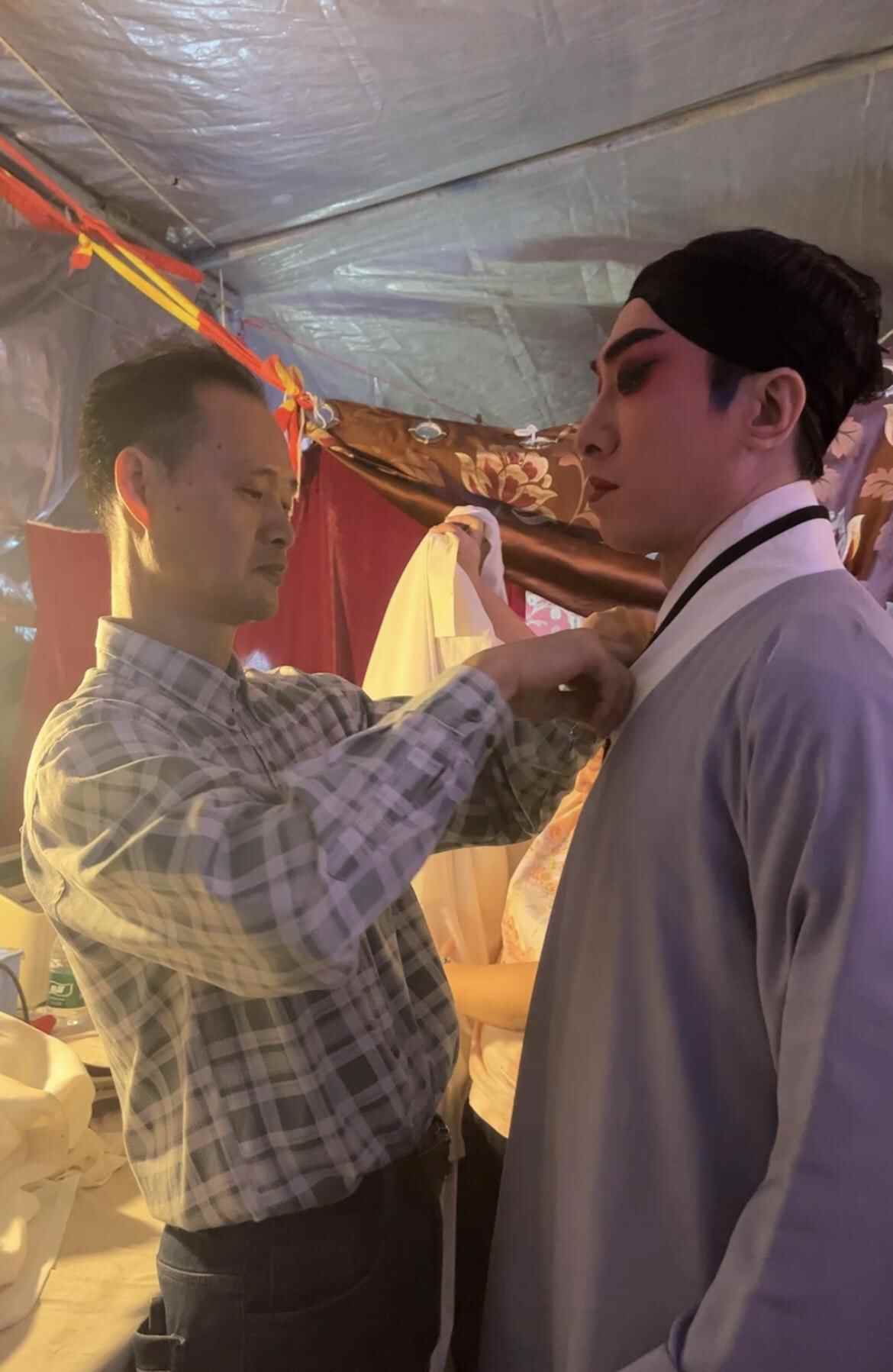 每晚三小时,演足五天;每天春班演出谢幕时已将近11点。秦志力逐一接过演员们卸下的服装,先前的锣鼓声变成吹风机的呼呼声。