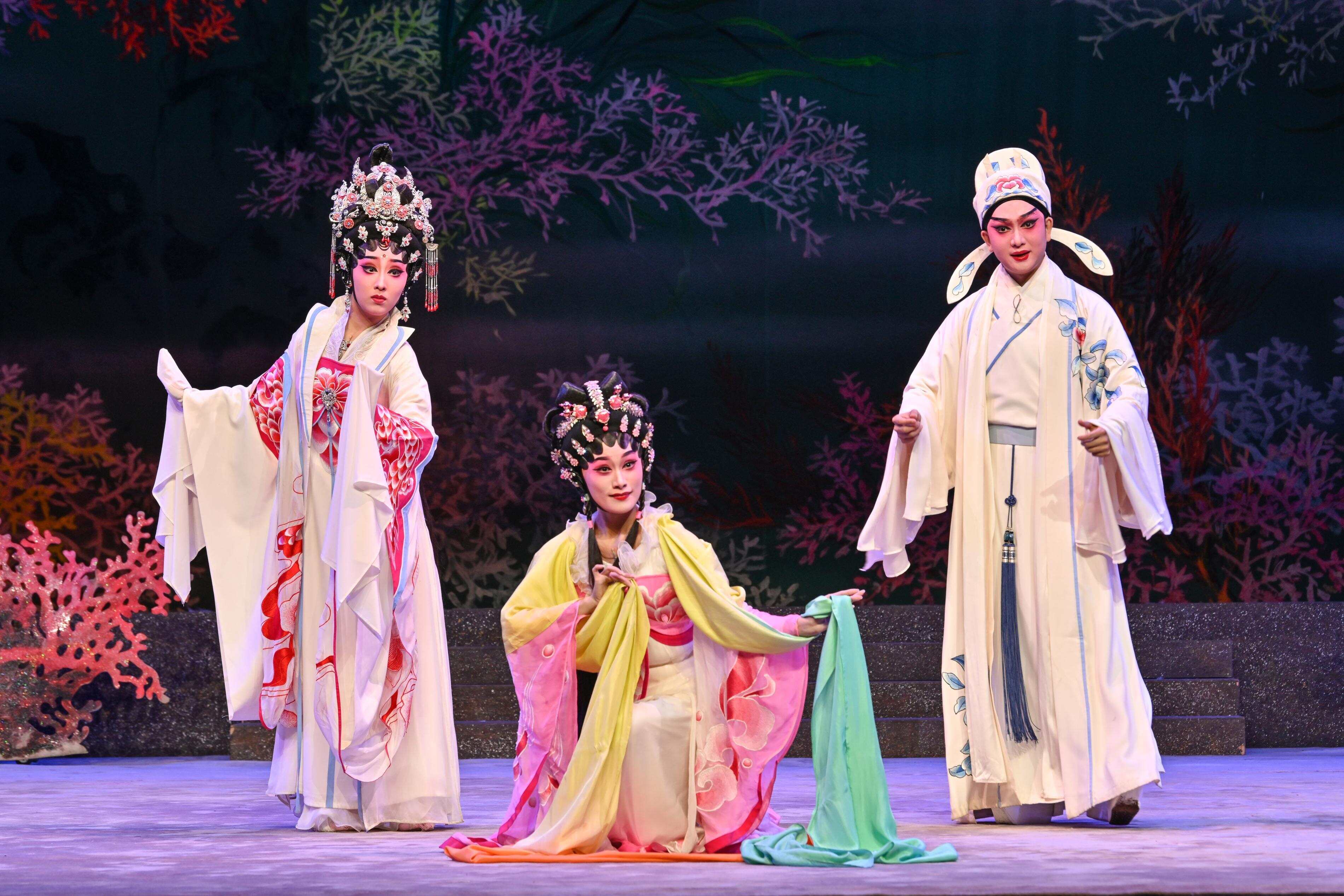 改编自经典神话的《柳毅奇缘》,以书生柳毅与龙女三娘的仙凡之恋为主线。该剧“青春版”在保留传统唱腔的基础上,融入现代舞美设计,打造出“虚实相生”的浪漫美学。新生代小生、二级演员康健以温润气质与清亮嗓音诠释书生侠骨;二级演员马友民饰龙女三娘,其扮相清丽脱俗,将受困龙女的委屈与坚韧演绎得细腻动人。剧中“花好月圆”一折,被观众调侃“甜度超标,堪称粤剧版‘古偶剧’”。