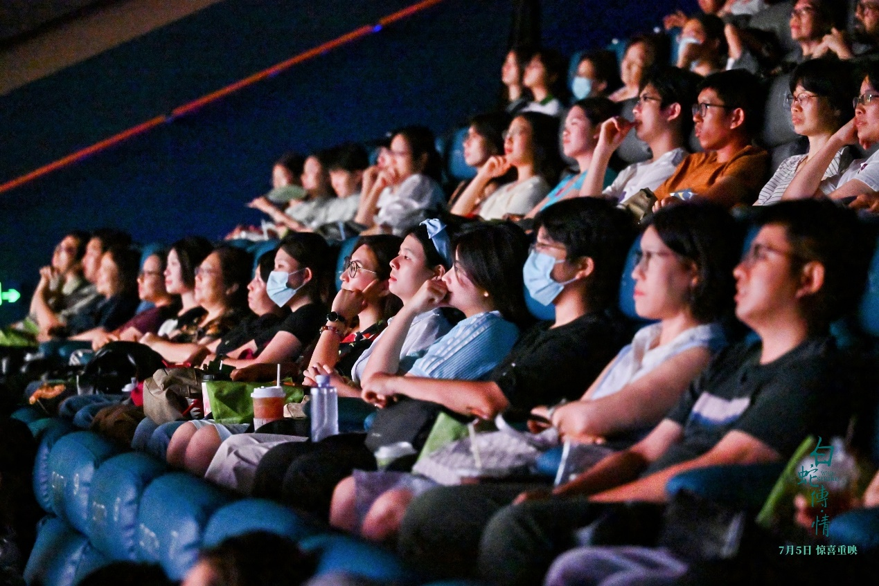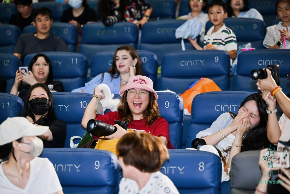 在见面会前的观影中,观众再次在大银幕看到“白蛇”的旖旎身影,听到婉转的粤剧唱腔,不少人感动得热泪盈眶。片中白蛇的敢爱敢恨,敢舍身和许仙相守,又一次赢得了观众的心。而同样打破传统人物设定的“姐宝女”小青和心存慈悲的法海,也各有拥趸。整部影片将“人若无情不如妖,只要有情妖亦人”的主题诠释得淋漓尽致,加上高达90%以上的特效镜头、借鉴宋代绘画韵味的国风置景、银幕难见的粤剧演员身法绝技,让看过和没看过该片的观众都由衷感叹:“在影院看《白蛇传·情》,这种感觉真是太棒了!”