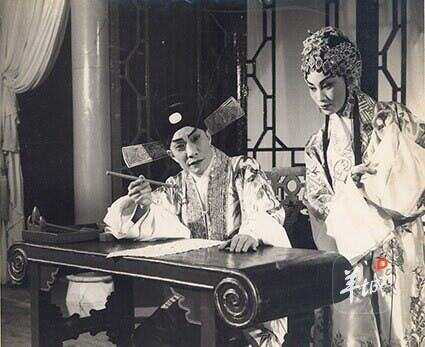 马师曾(坐)、红线女演粤剧《桂枝告状》