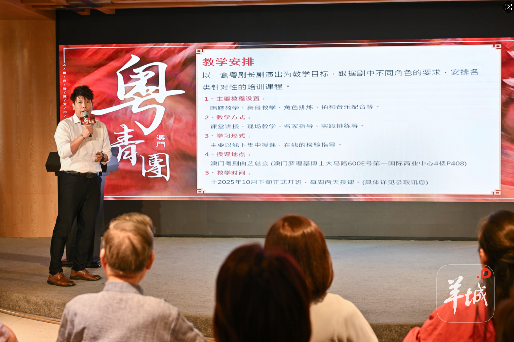 澳门粤剧曲艺总会办公室主任林时响介绍,“澳门粤青团人才培养计划(2025-2026)”将于2025年10月下旬开班,每周线下授课两天,课程涵盖唱腔、身段、角色排练、音乐配合等,全程学费全免(不含教材、排练服装费用)。