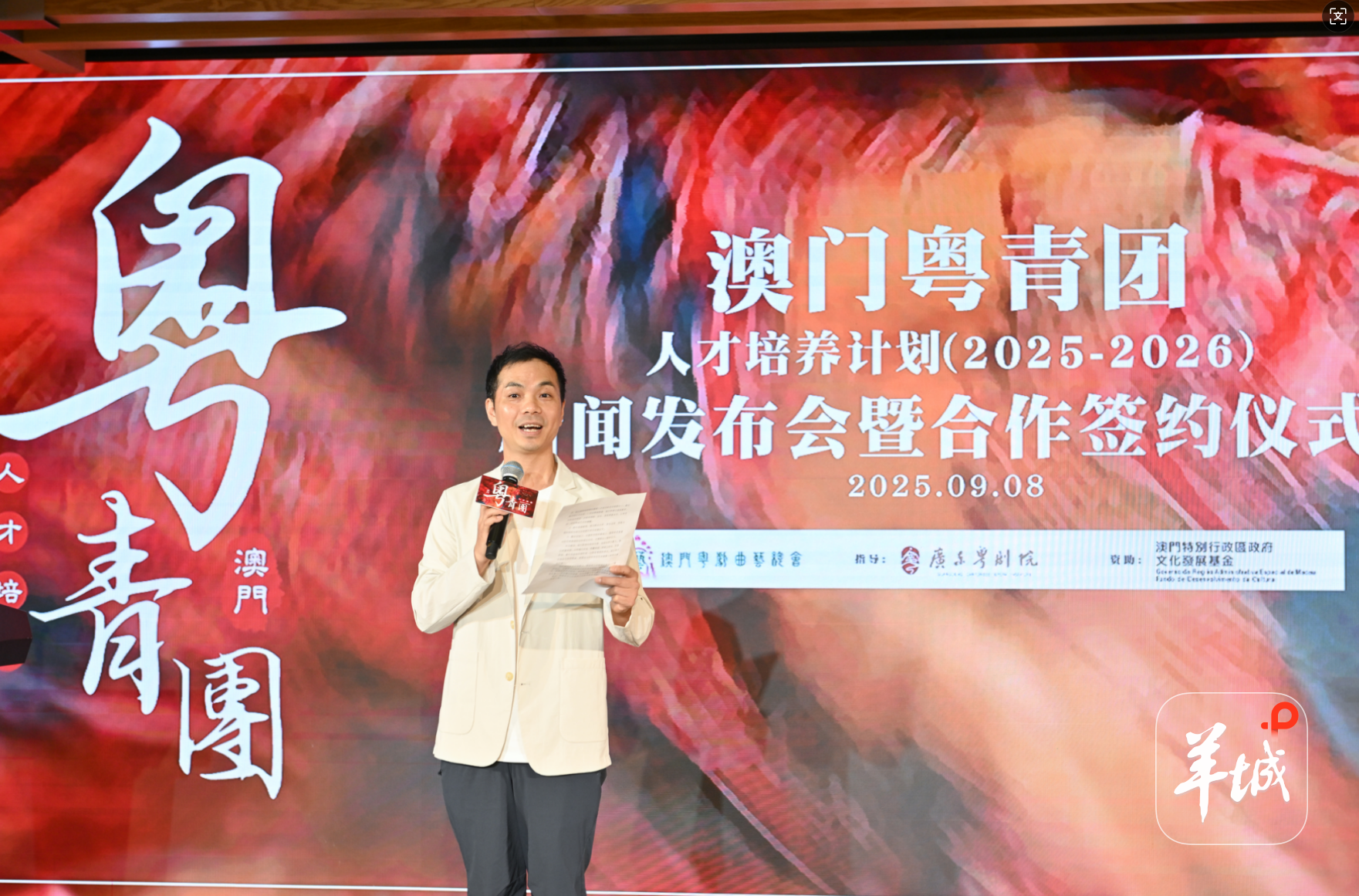 9月8日,由澳门粤剧曲艺总会主办、广东粤剧院指导的“澳门粤青团人才培养计划(2025-2026)”新闻发布会暨合作签约仪式在广州举行。
